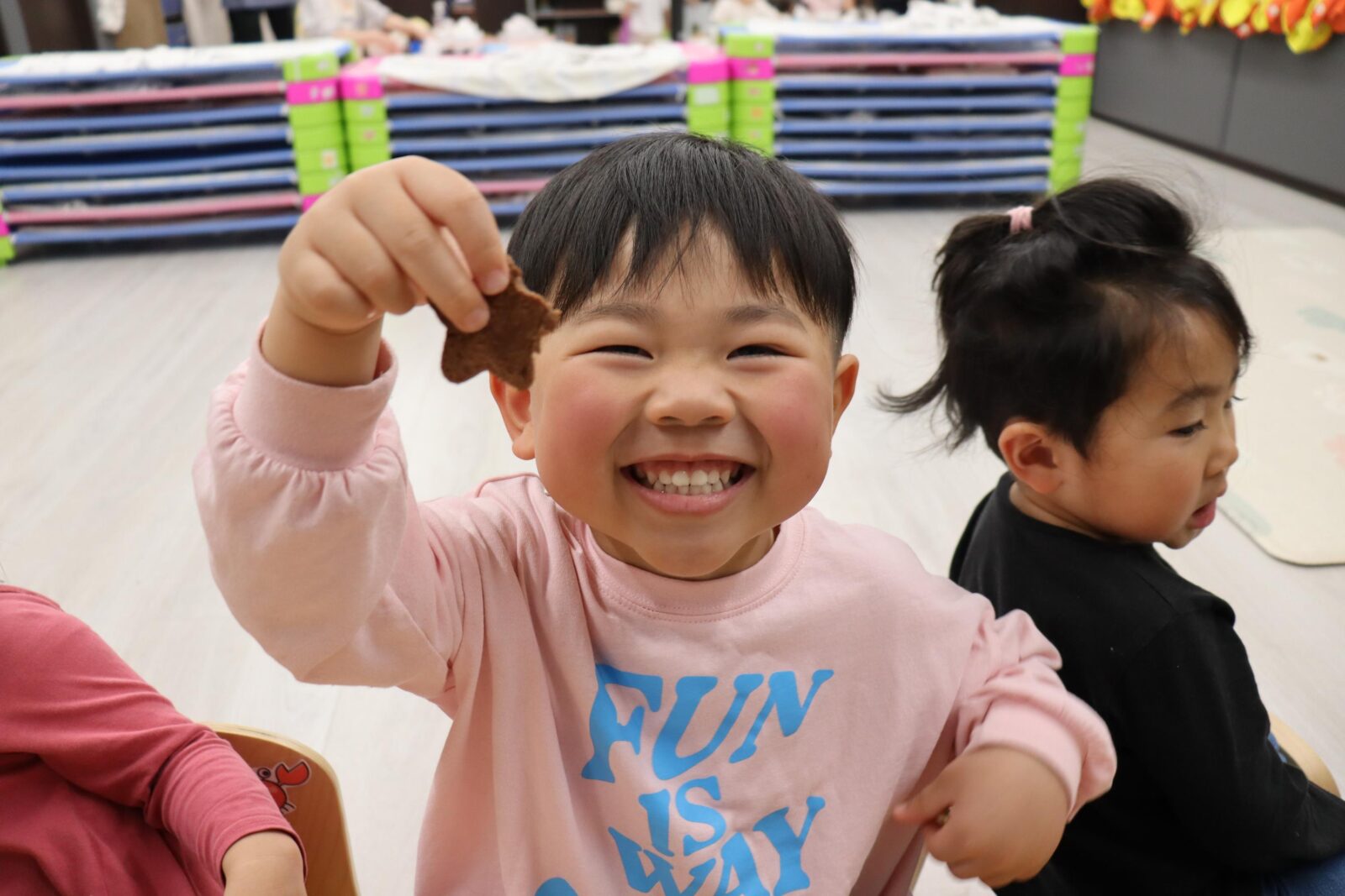 ほし組さんがクッキーづくりをしました💗 生地を丸めて、伸ばして、型で抜いたら、あとは焼きあがるのを待