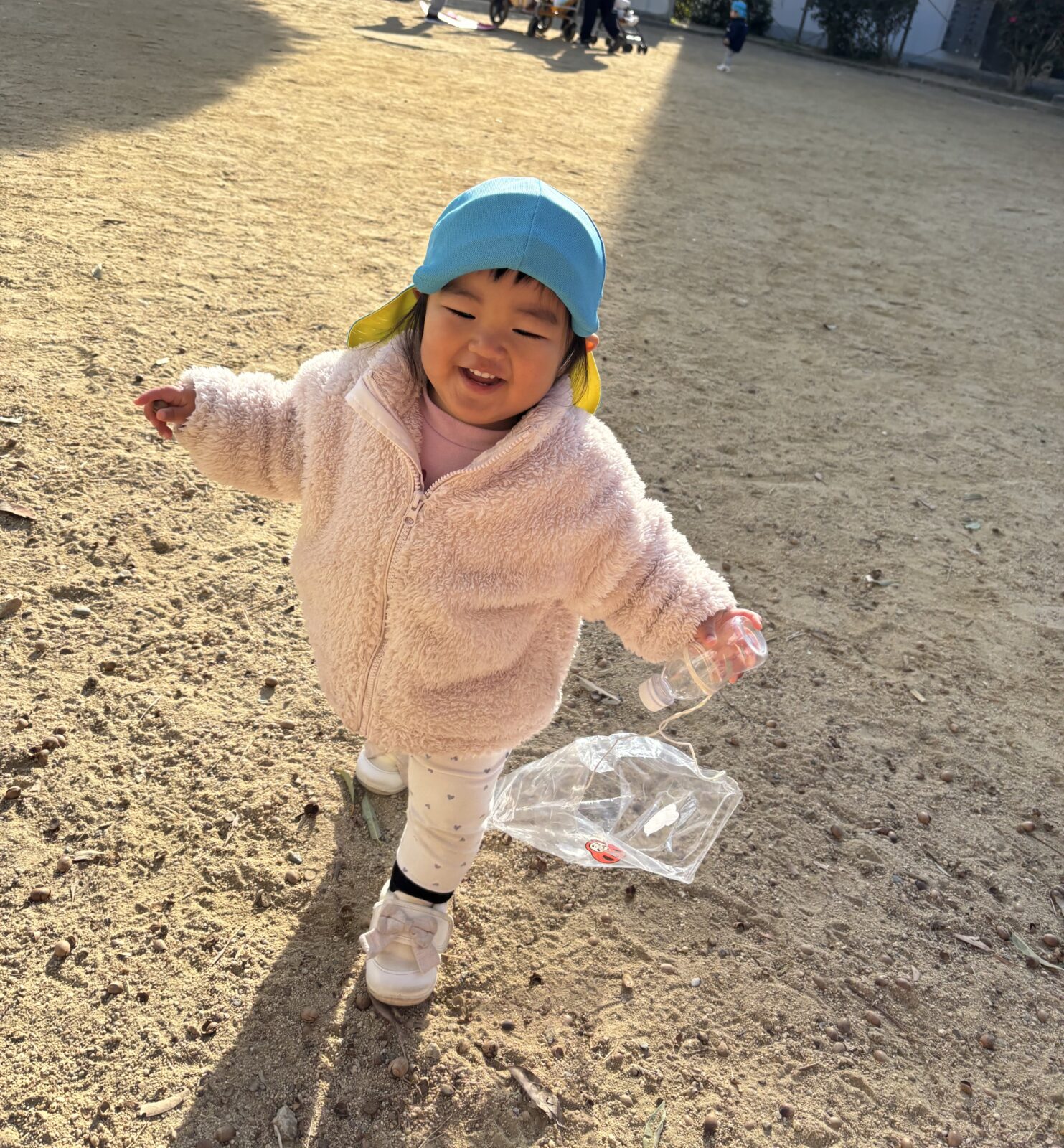 たんぽぽ組さんの公園遊びの様子です♪ 製作で作った凧を持って公園へ✨ みんな元気いっぱい走り回ってい