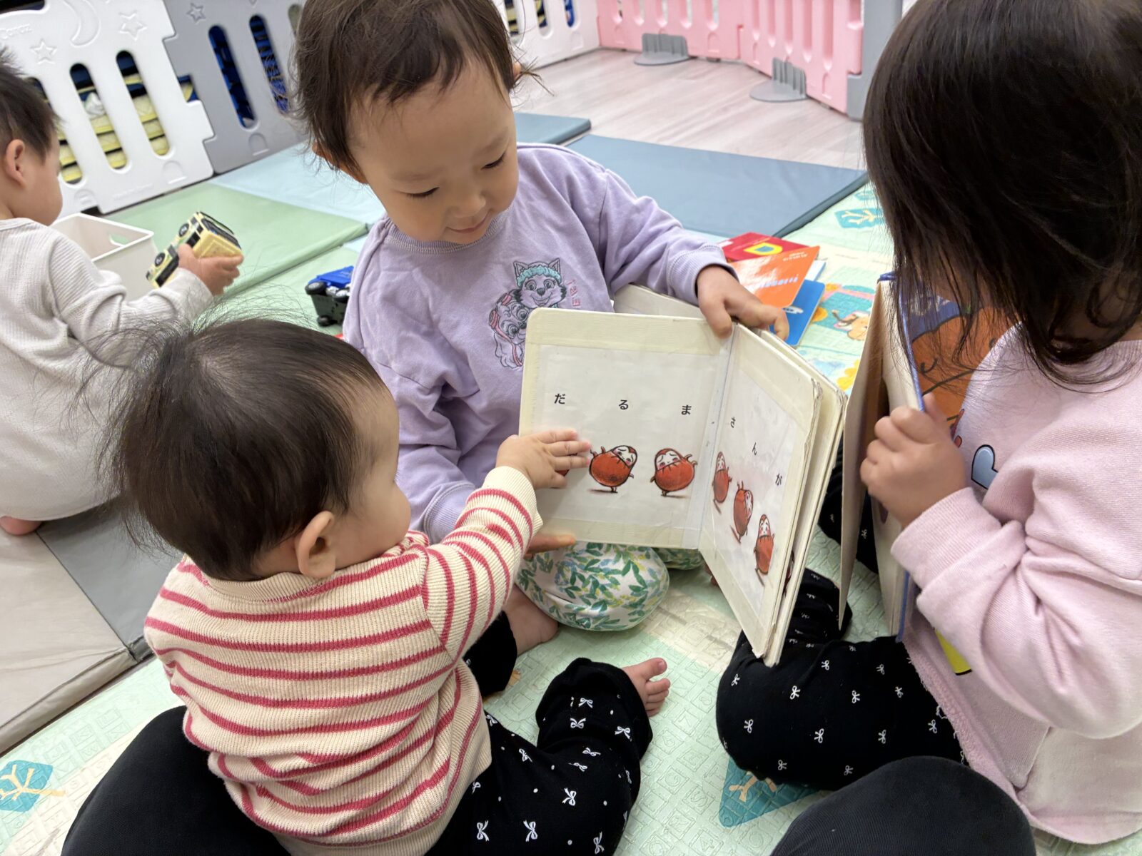 子どもたちの室内遊びの様子です(*^-^*) 水でかけるお絵描きシートで遊んでいました😊 絵を描いた
