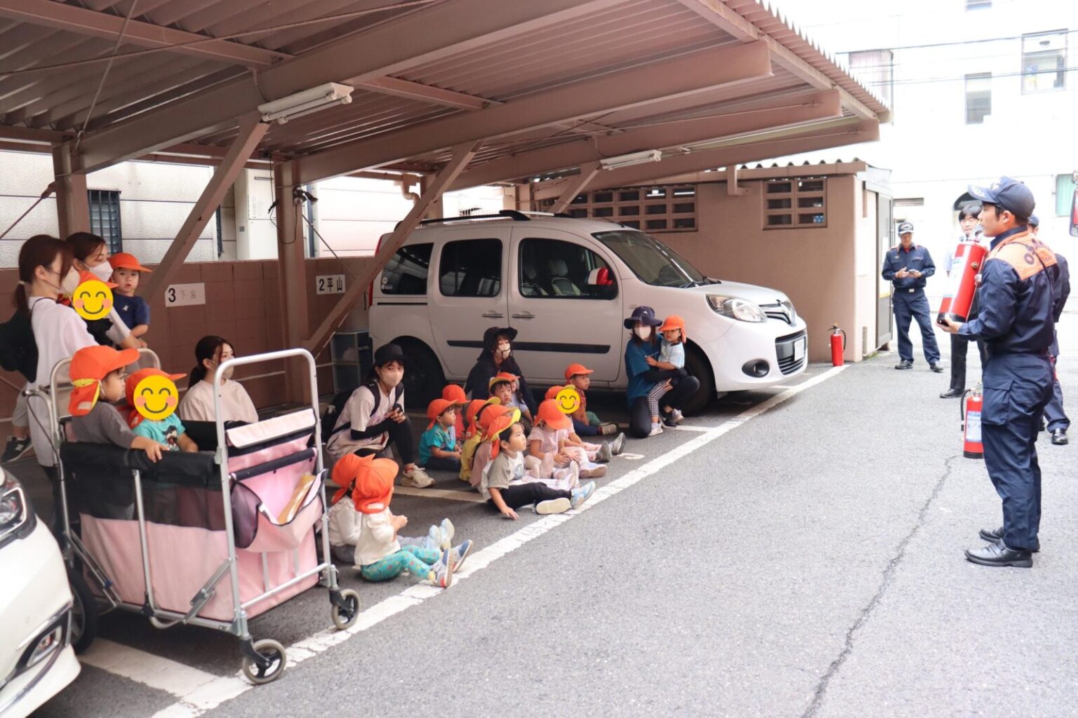 消防士さんのお話や先生たちが消火器訓練をしている様子をじっと座って見つめてくれていました(^^)/