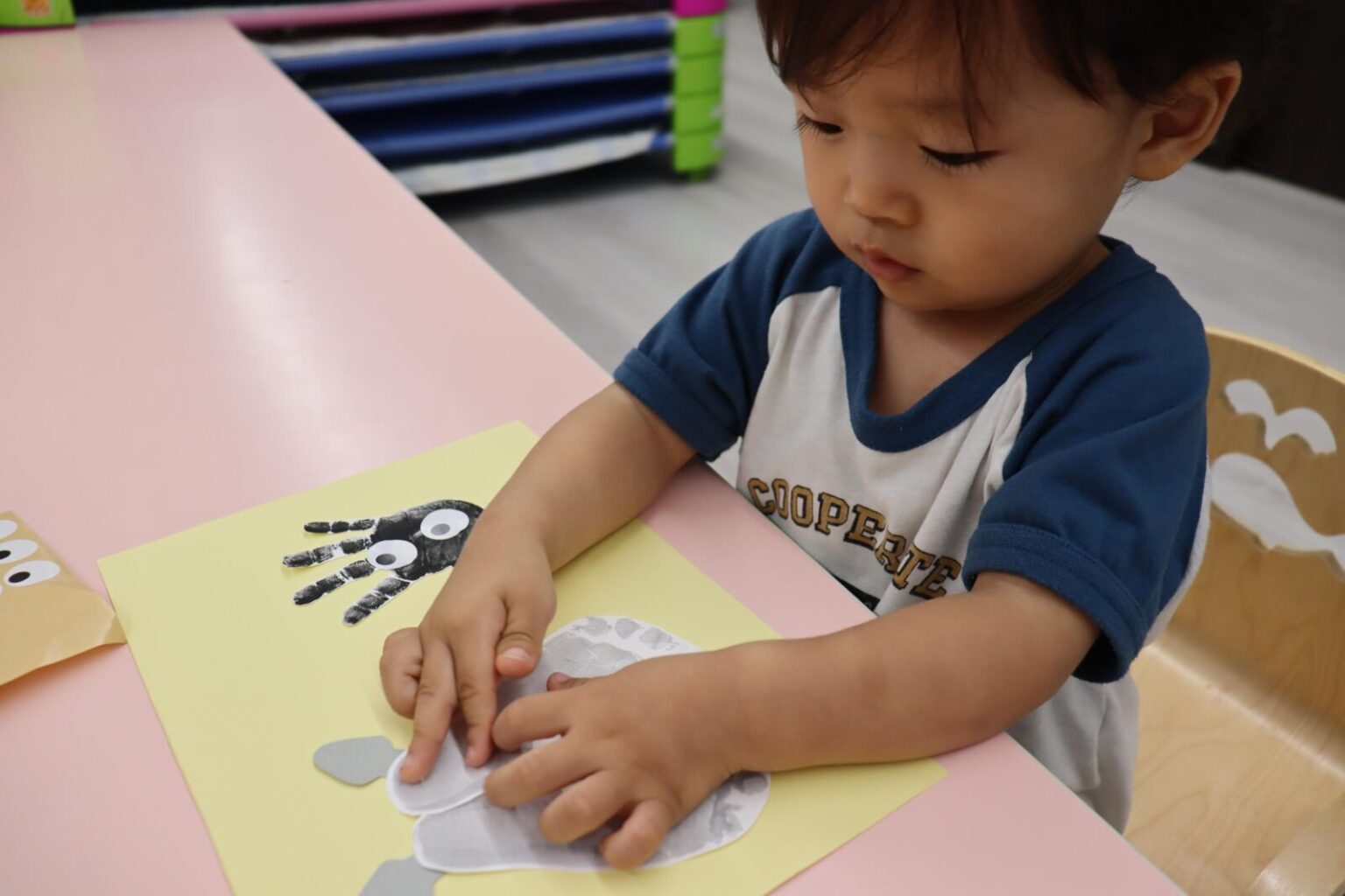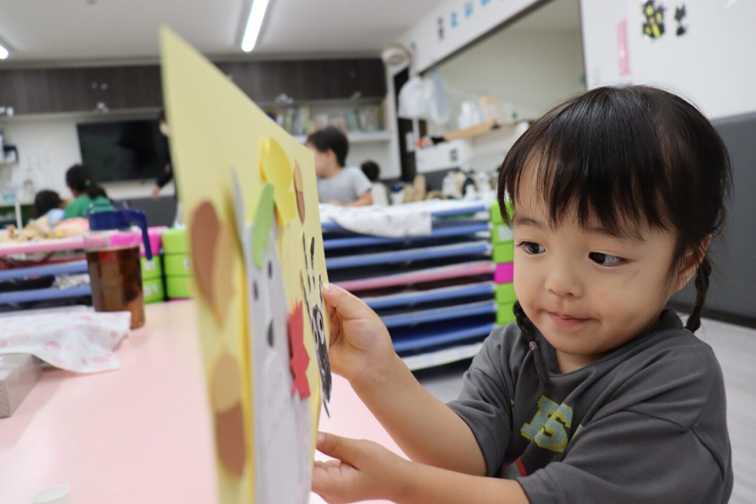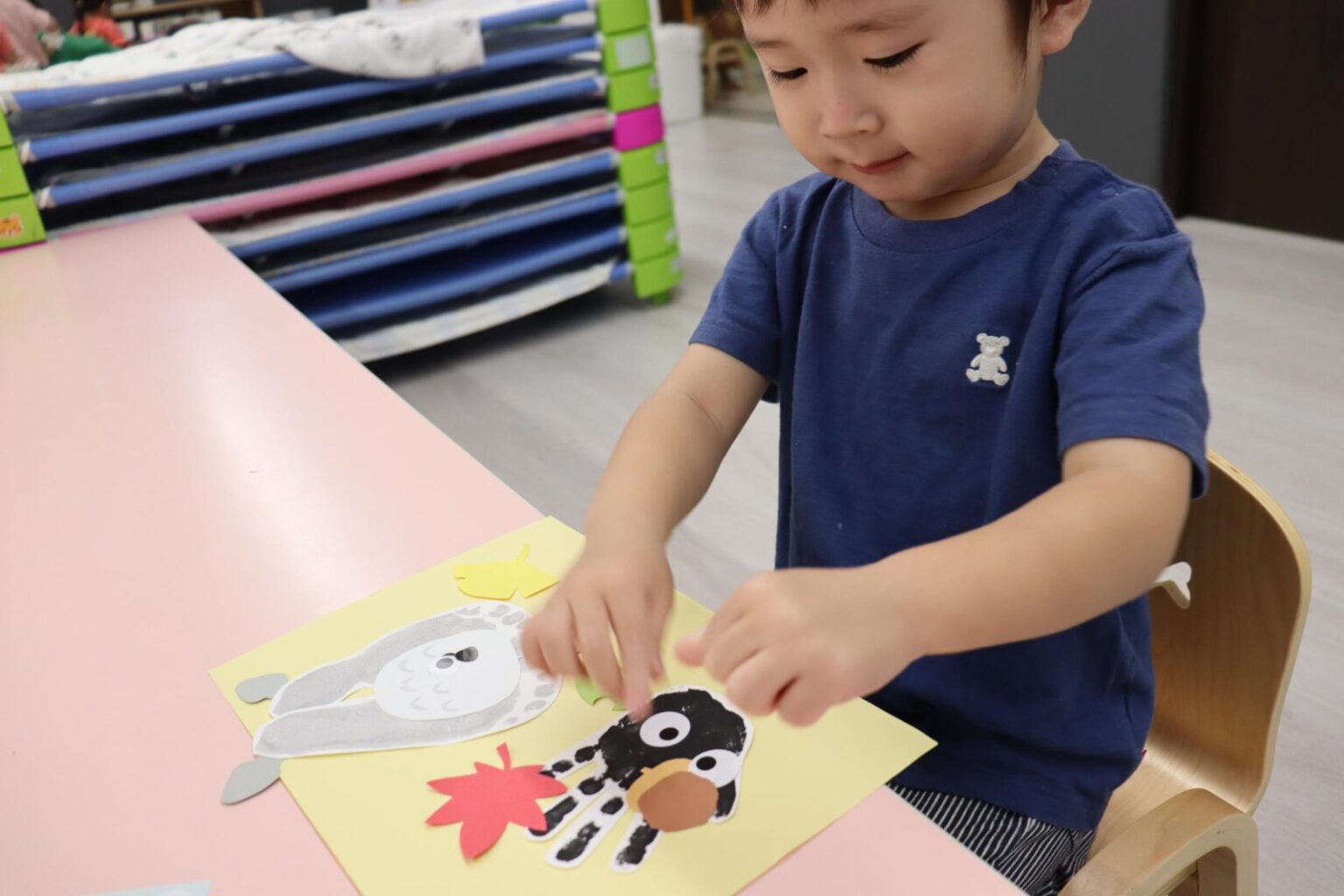 目をつけて、もみじやイチョウの葉、どんぐりで飾って可愛くできました💗