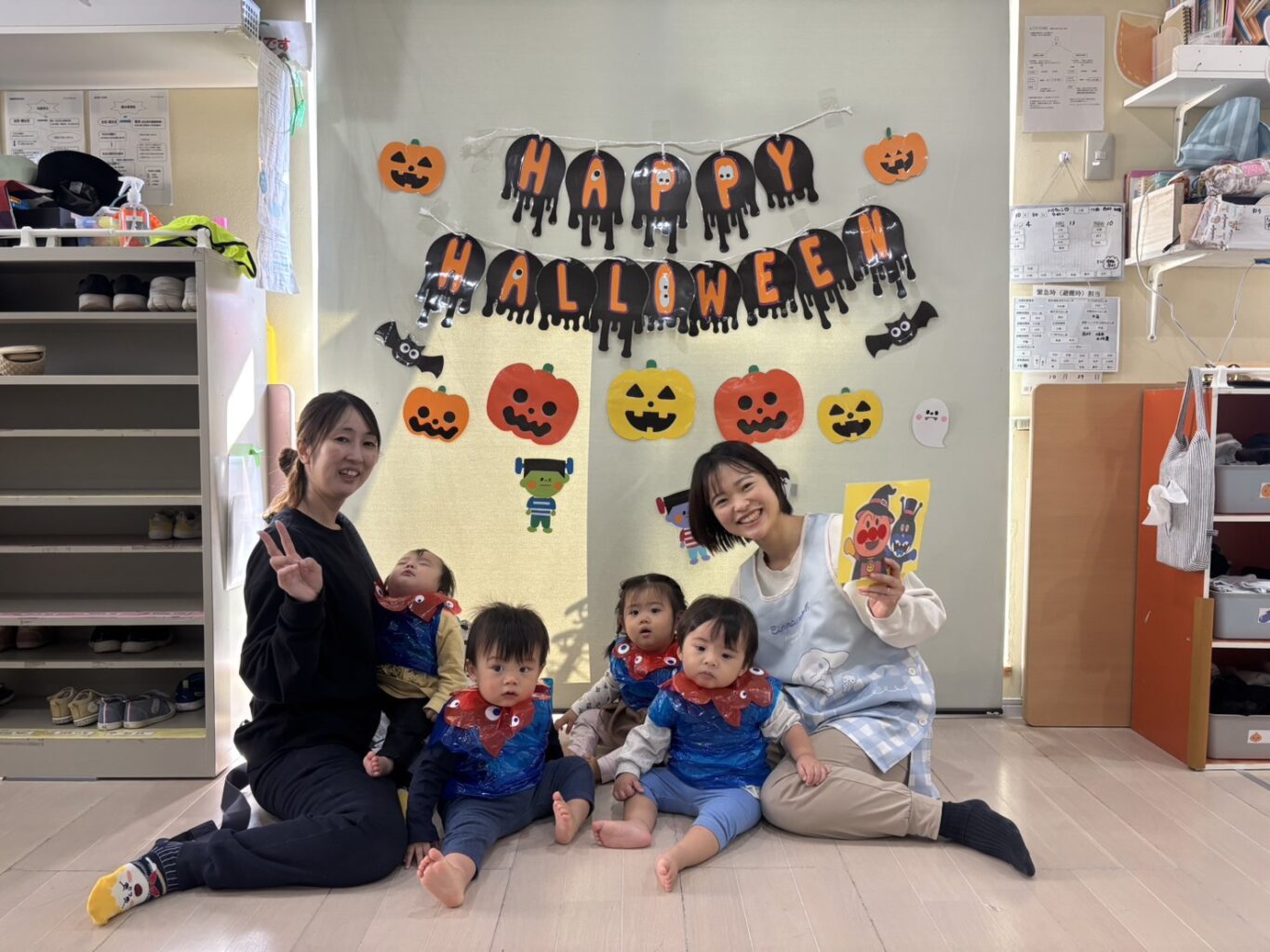 お散歩でたっぷりお腹をすかせたあとはハロウィン給食です~✨