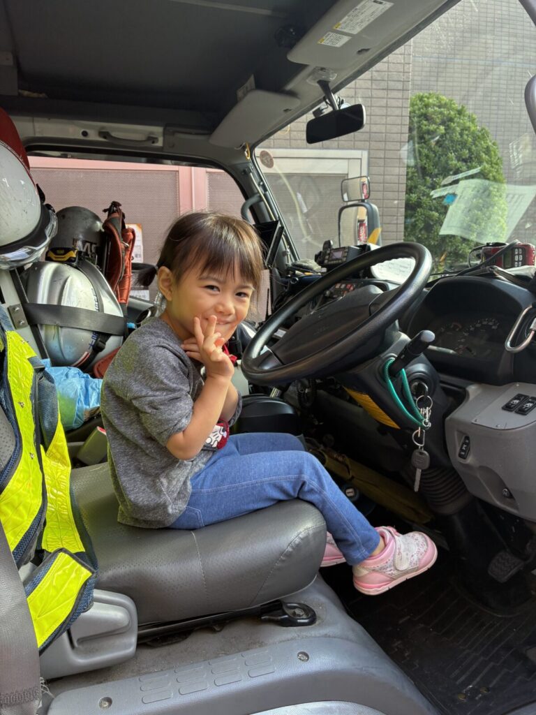 運転席にも乗せてもらい、大喜びの子どもたちでした🎵