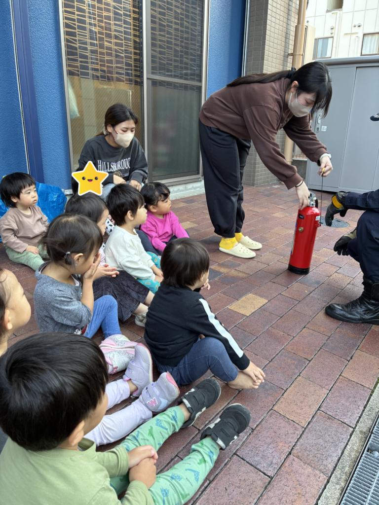 その後は消防士さんのお話を聞いて、先生が消化器訓練を行いました🧯
