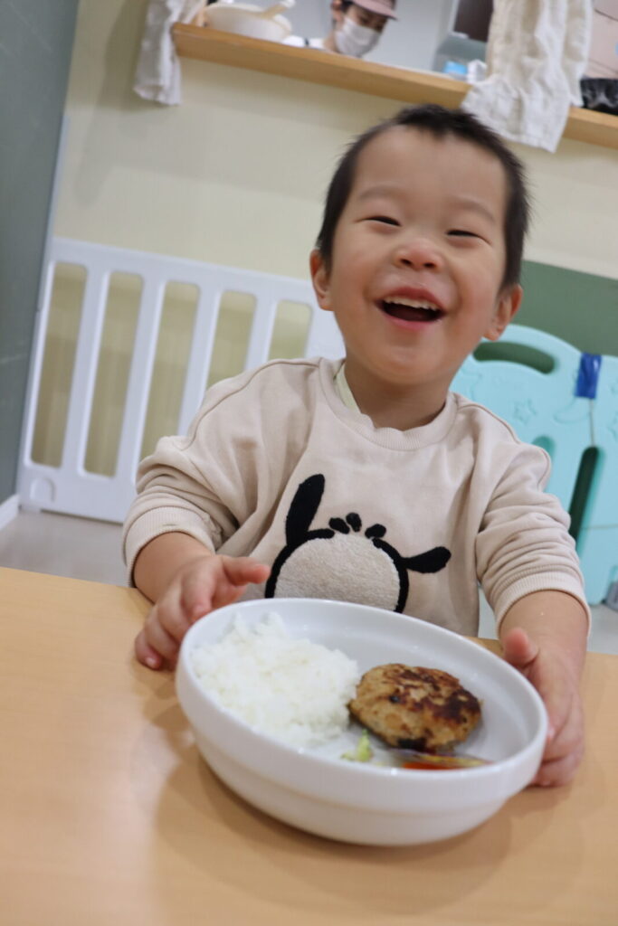 この日の給食はハンバーグでした🎵おいしそう~🍴✨