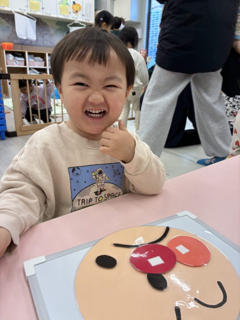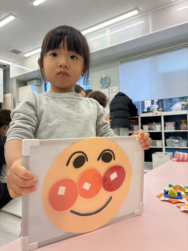 アンパンマンの福笑いに挑戦している子どもたち(*^-^*)