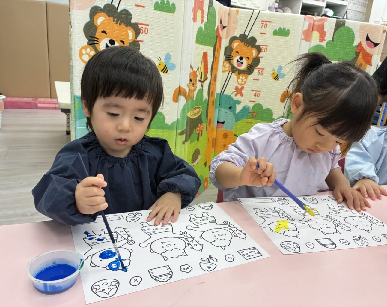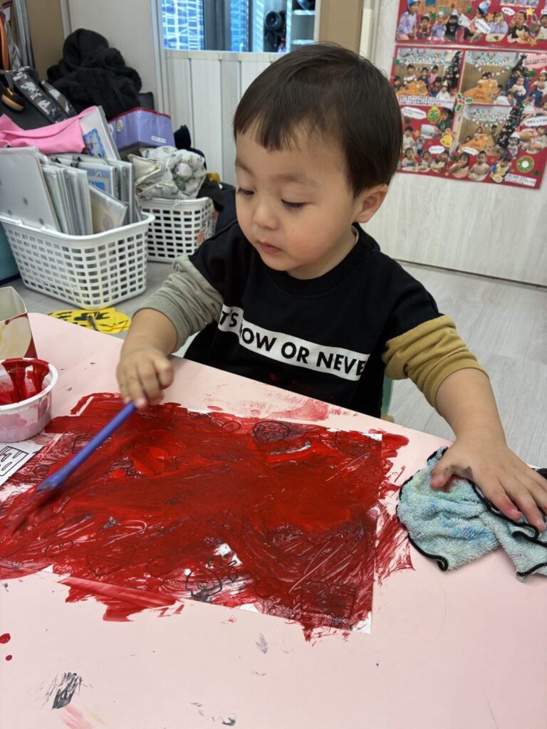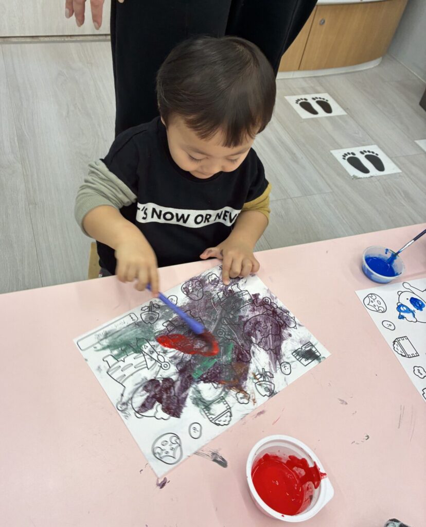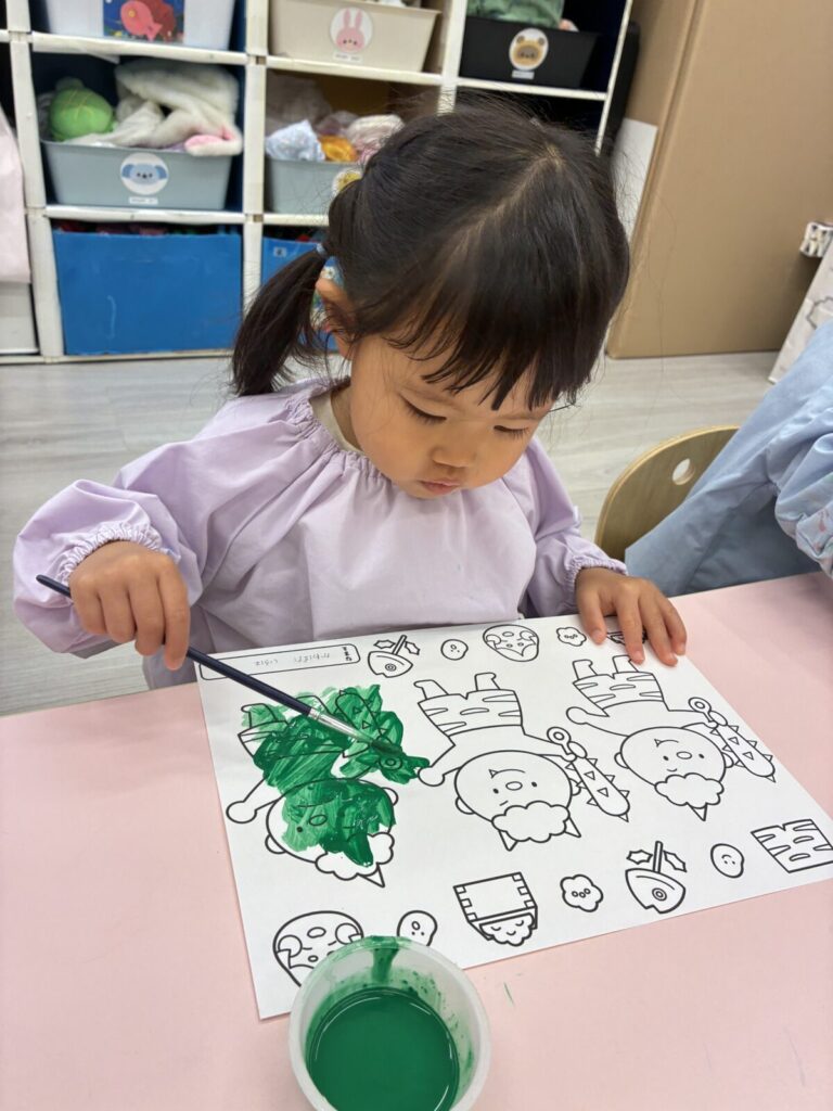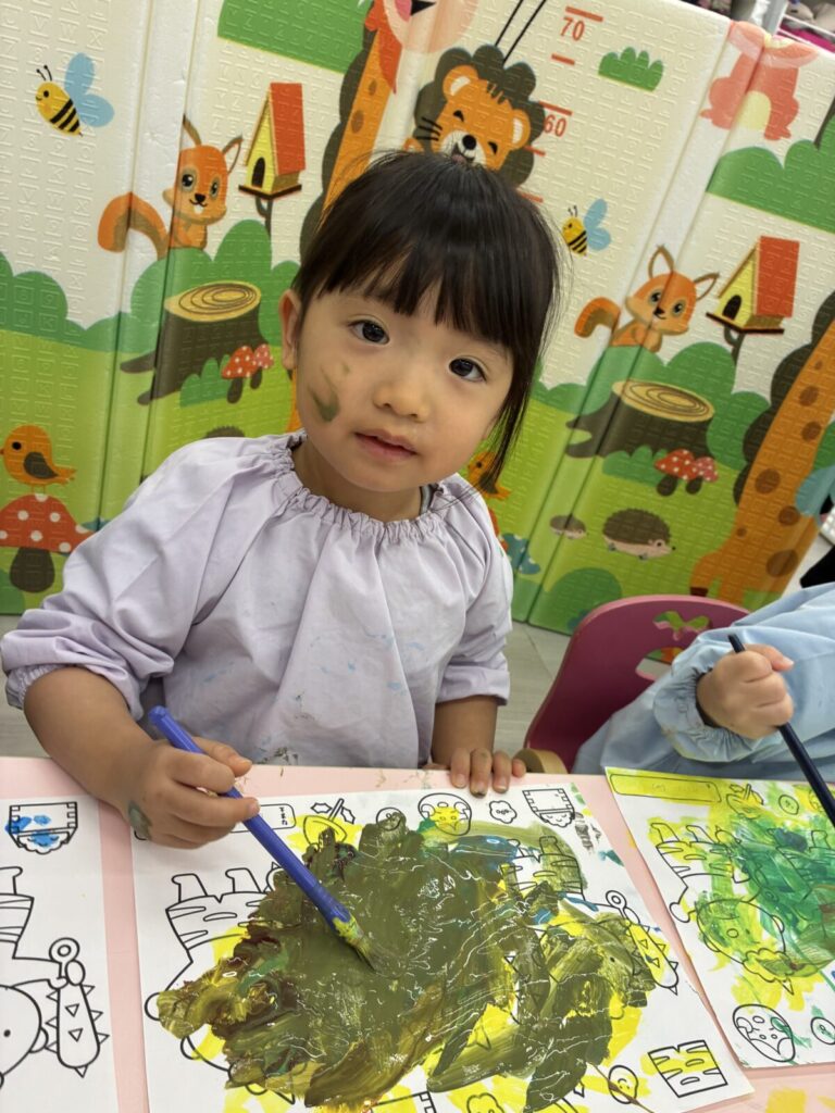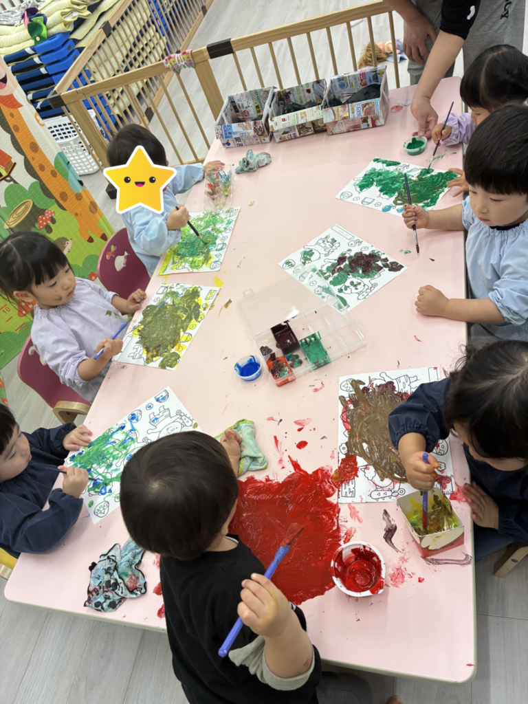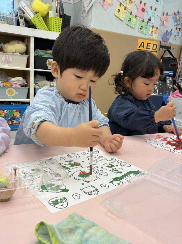 慎重に塗るお友達や、豪快に塗るお友達、みんな塗り方が様々でたのしい製作ができました😊♪