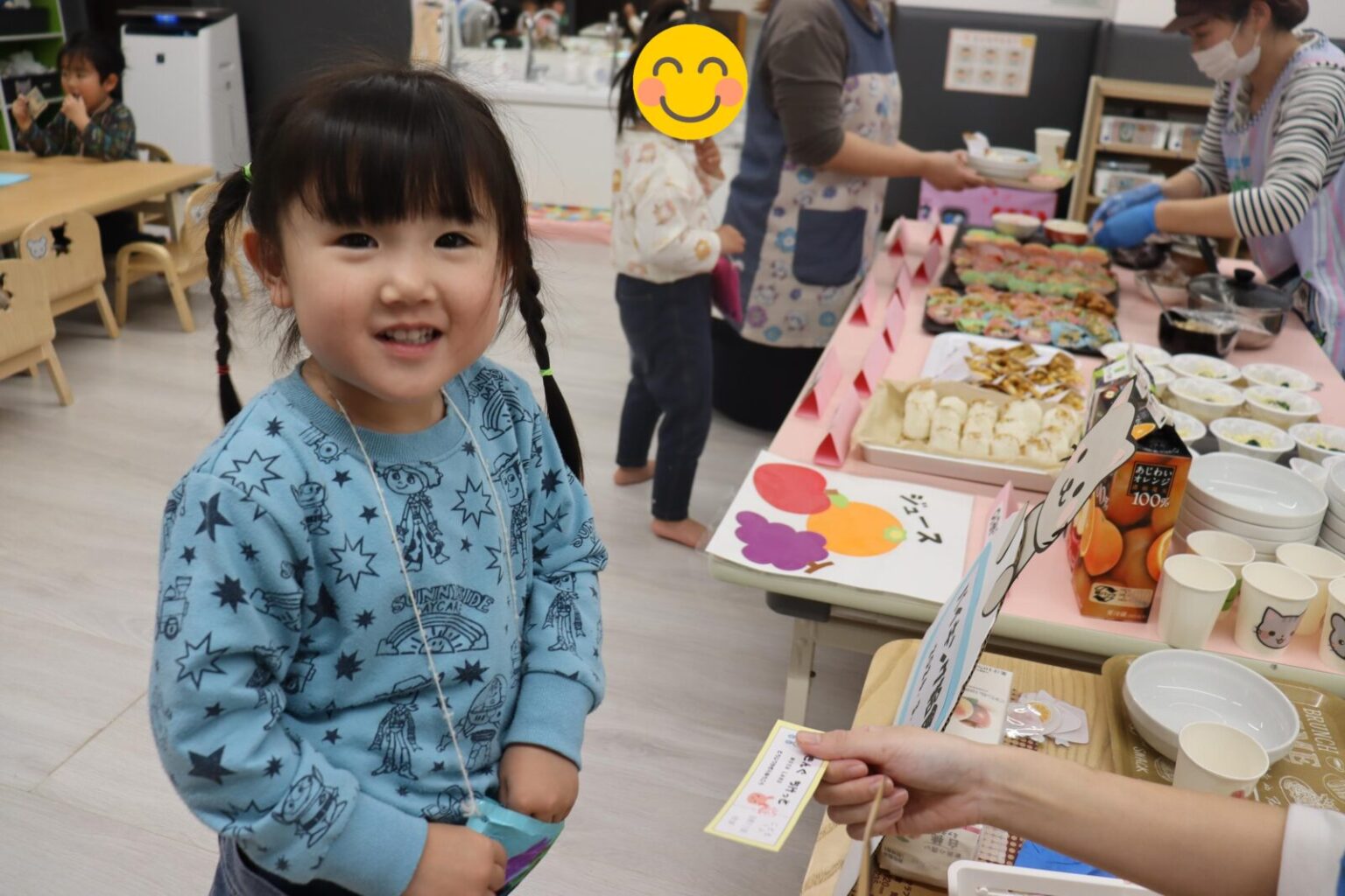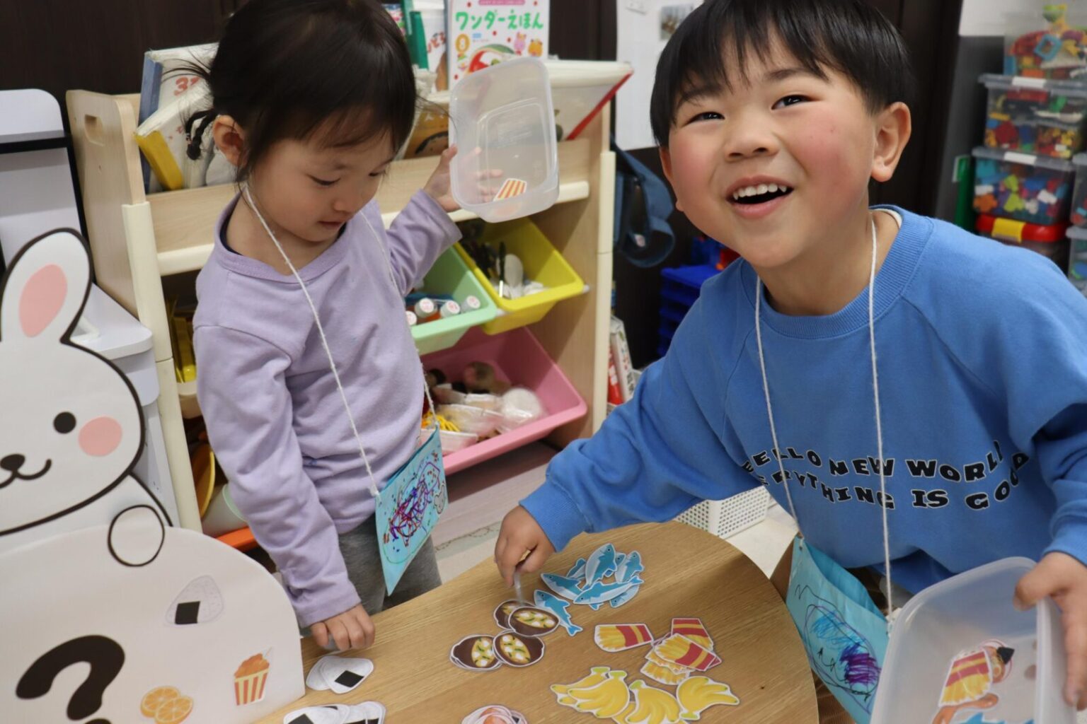 自分たちで作った財布をぶら下げて、たくさんのメニューの中から食べたいカードを真剣に選んでくれていました✨