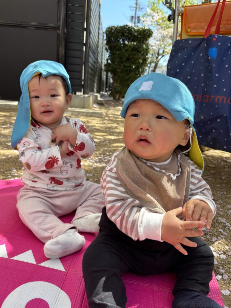 たんぽぽ組さんはお座りしながら砂や小石や落ち葉などに興味を示してくれて、自然の感触を楽しんでいました🍂🌻